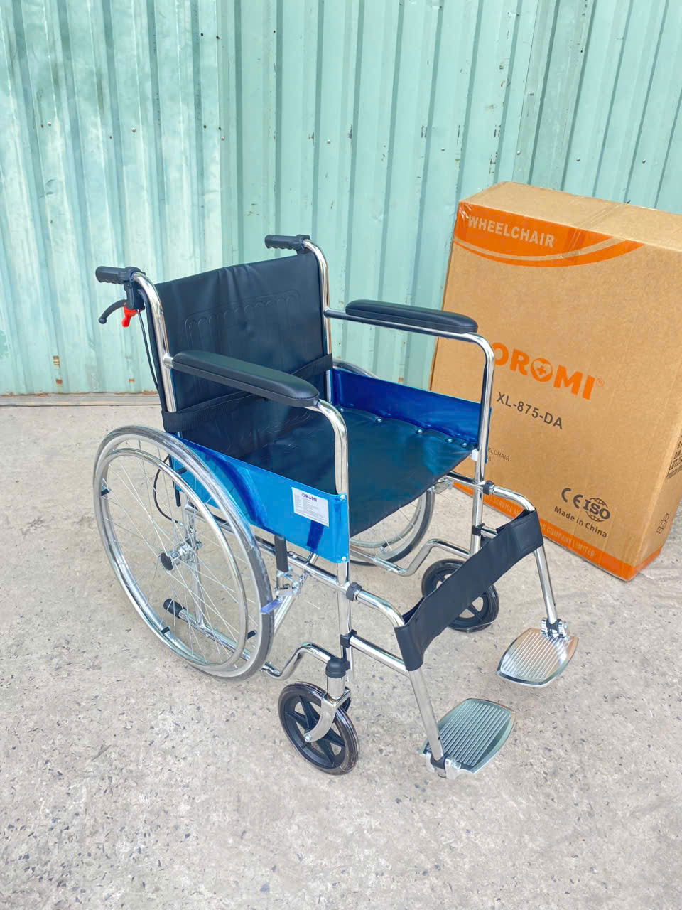 - Khung xe đẩy dành cho người già, người bệnh và người khuyết tật OROMI XL-875 làm bằng chất liệu thép mạ crom siêu bền đẹp, tuổi đời sử dụng cao.
